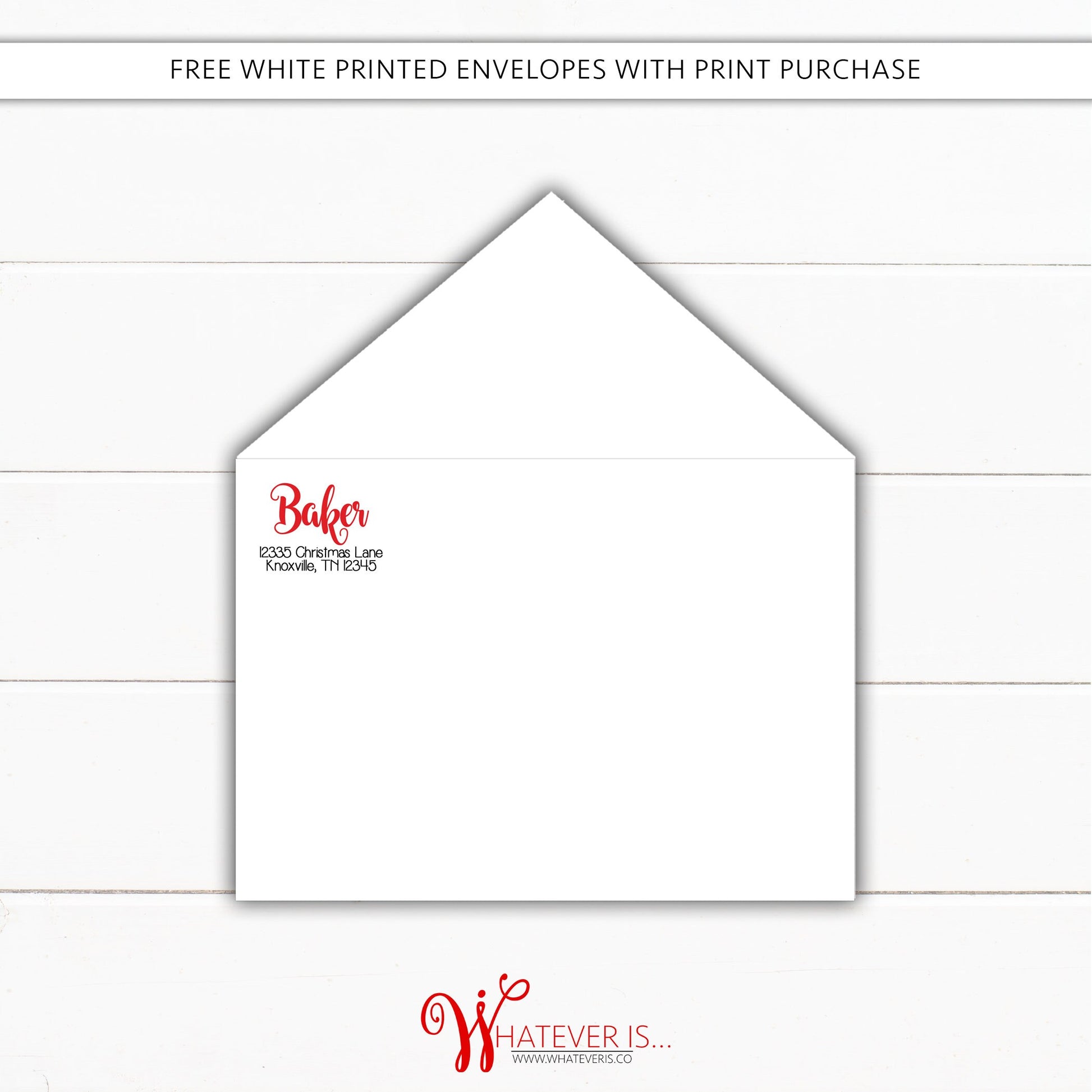 I would love to! Your Christmas card will be printed on 100lb high quality smooth card stock and include white printed envelopes.