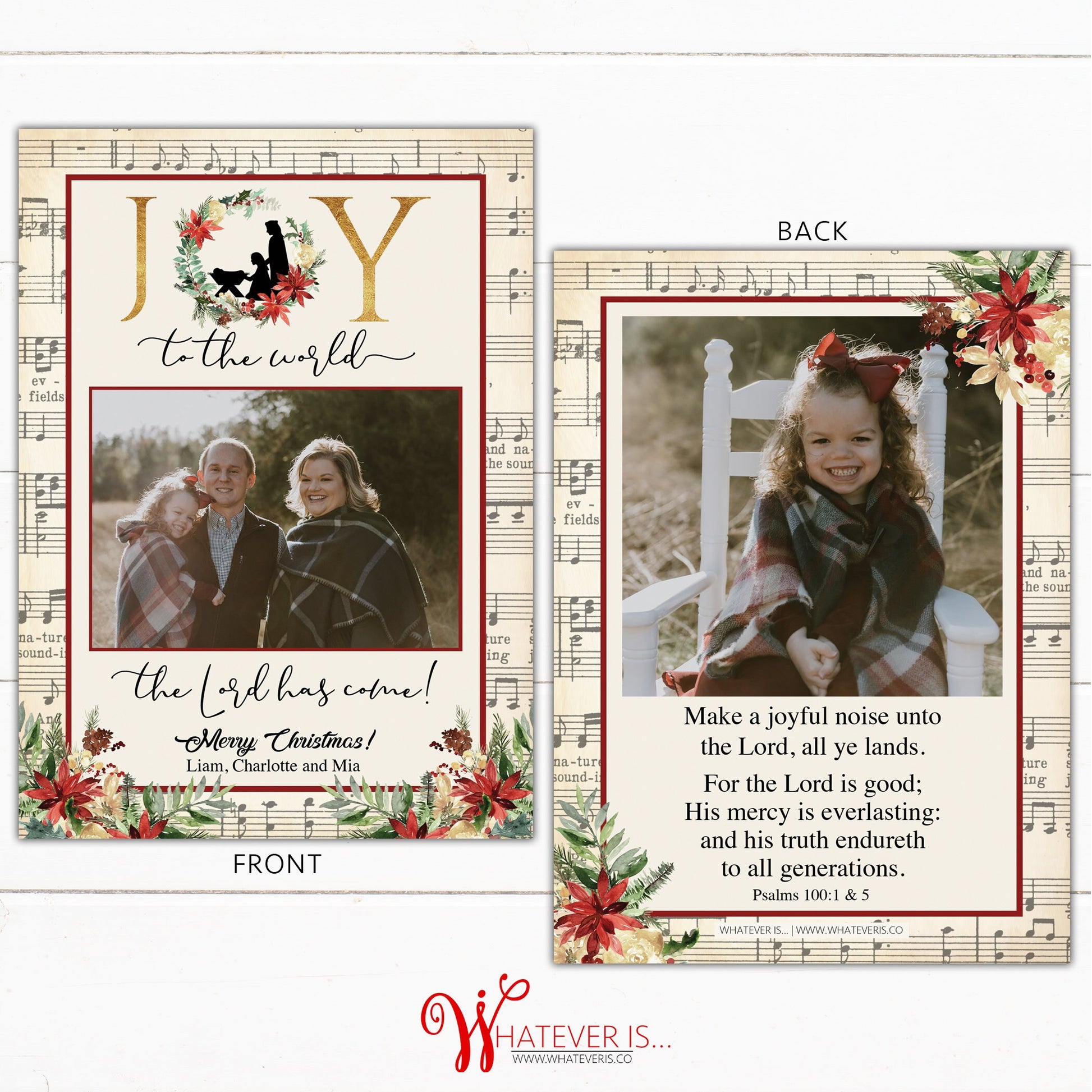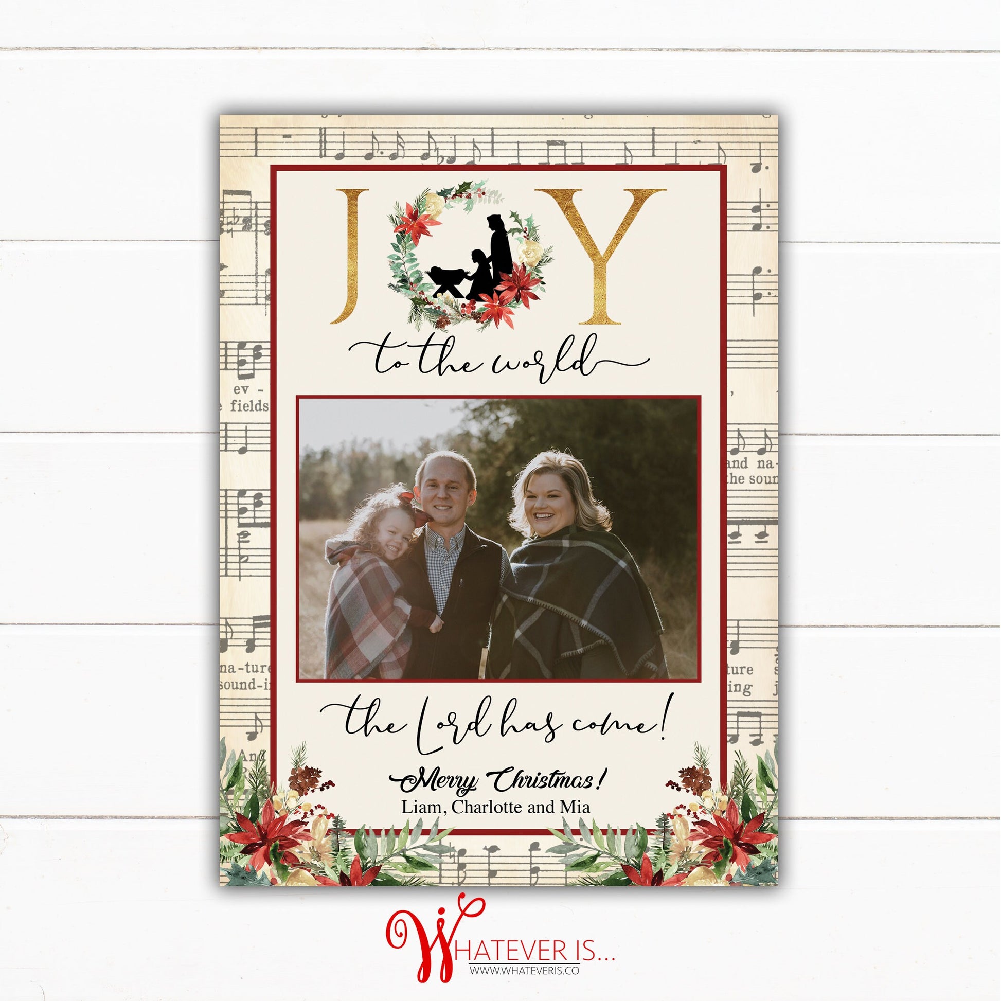 Make a Joyful Noise this Christmas with this beautiful Joy to the World Sheet Music family Christmas Card.