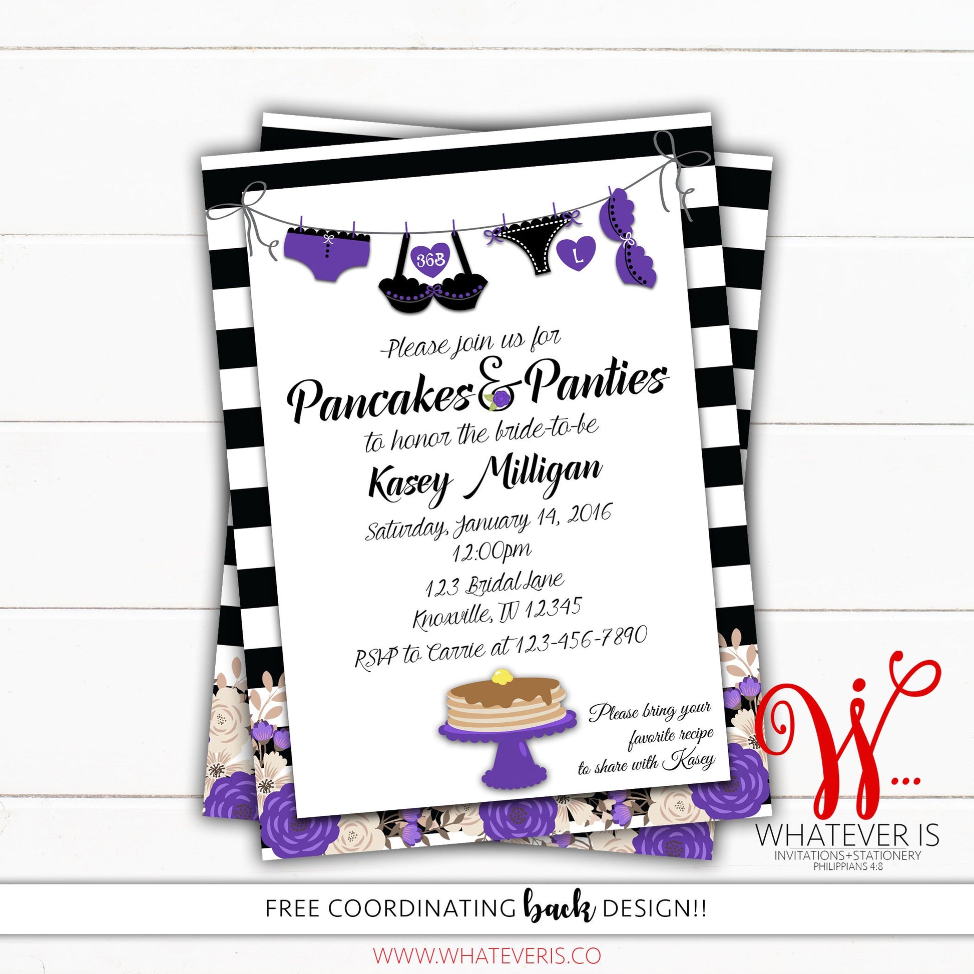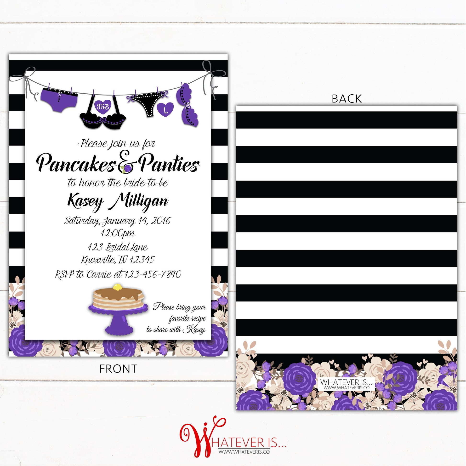 Pancakes and Panties Bridal Shower Lingerie Invitation | Purple Lingerie Bridal Shower | Pancakes and Panties | Floral Bridal Shower Invite