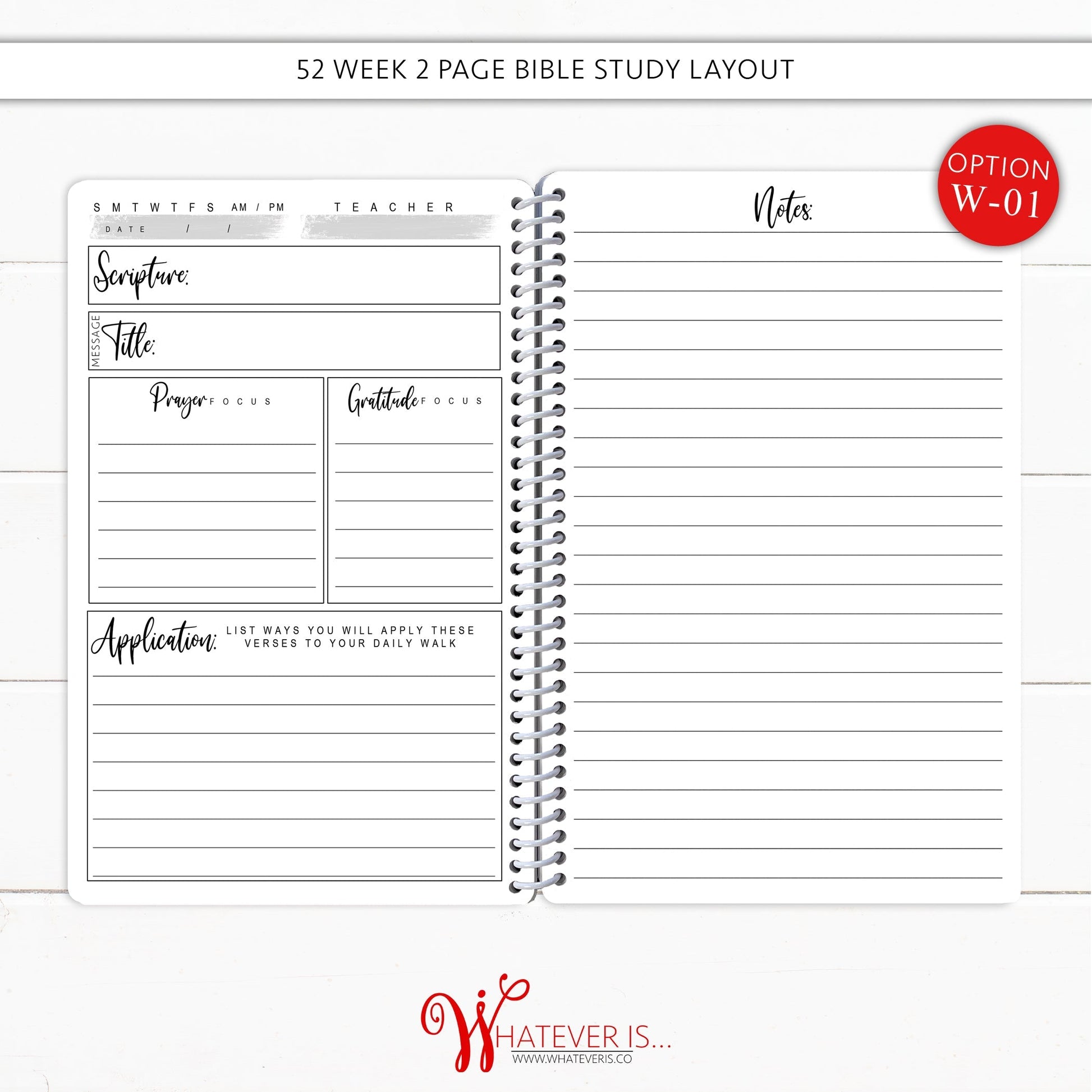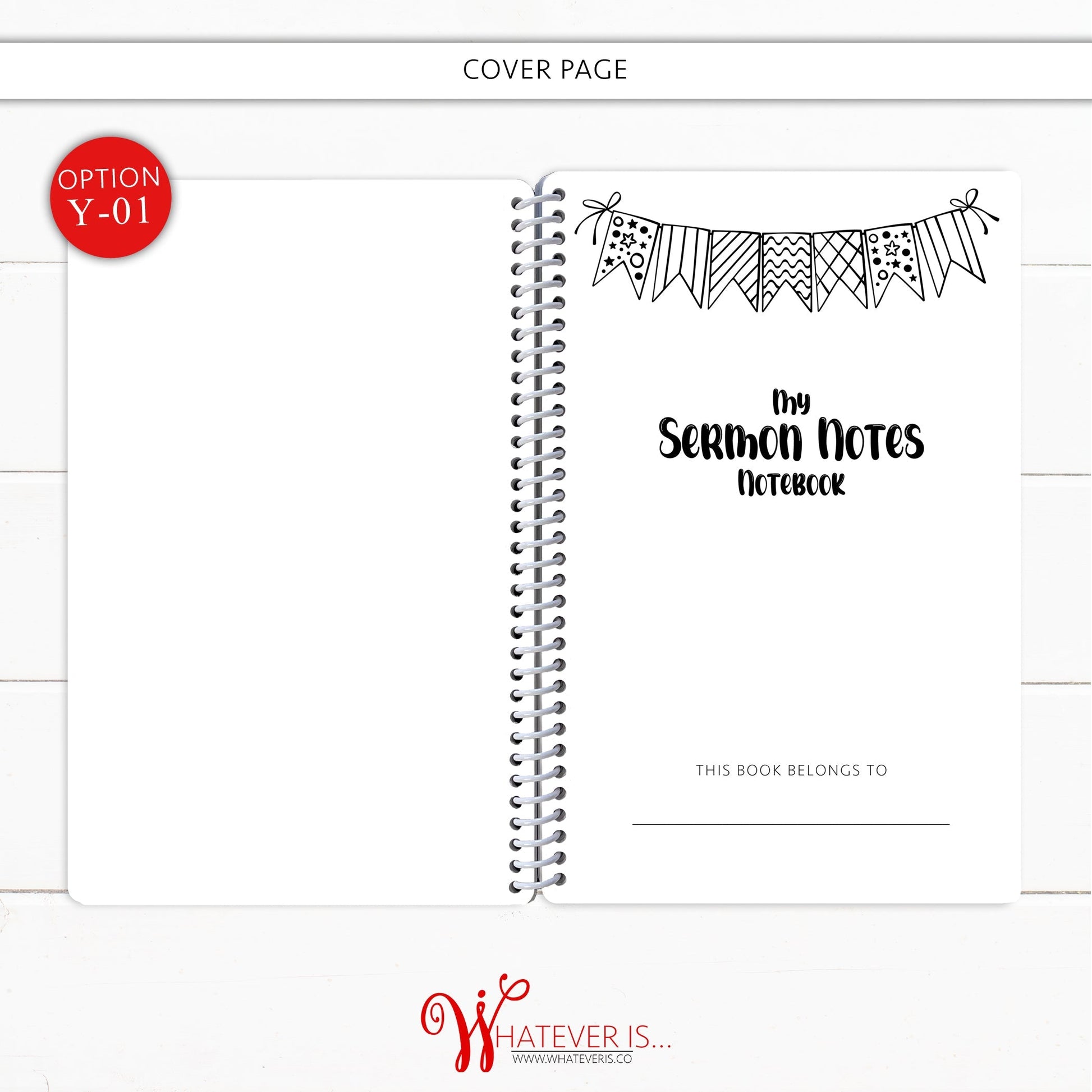 Each option offers a two page weekly sermon/Bible study Notes or you can choose a plain lined notebook.